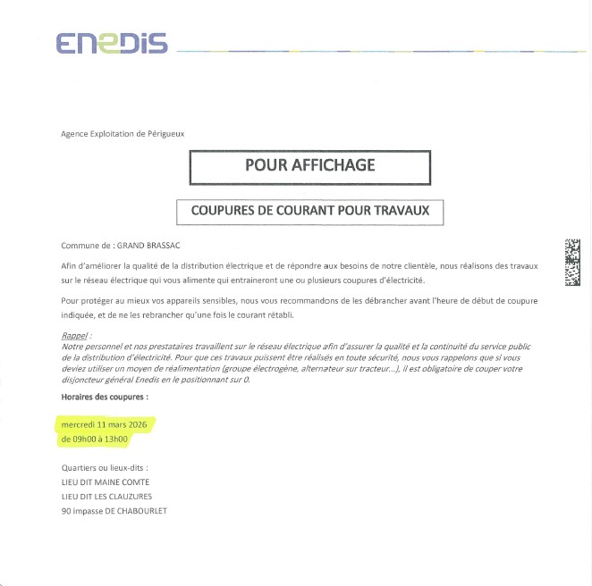 Grand-Brassac, commune de 560 habitants, Un descriptif de l’implantation de la structure, des locaux, du matériel mis à disposition, ainsi que les conditions financières et professionnelles exigées, sont consultables et téléchargeables ici. Le dossier de candidature accompagné des pièces demandées est à adresser, par courrier ou par mail avant le 16/02/2026.