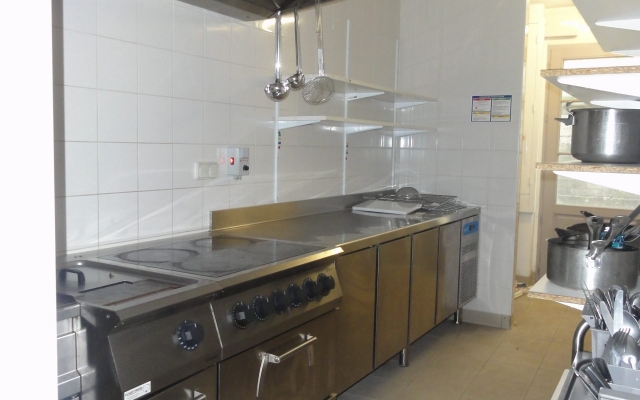 – une salle de restauration 49 m² pouvant accueillir 24 couverts mais plus l’été en utilisant la terrasse et la halle couverte à proximité. Elle est équipée de 6 tables et 24 chaises (nécessitant un renouvellement partiel) avec possibilité de compléments par du mobilier communal.